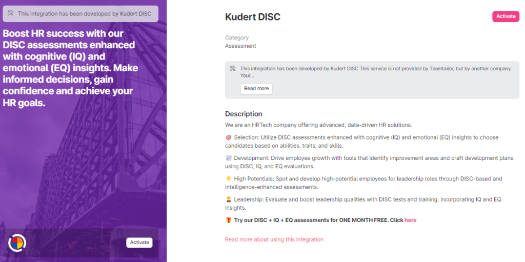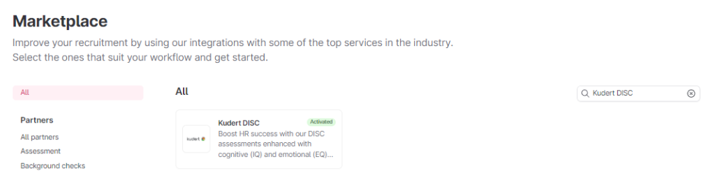 - En el Marketplace de Teamtailor, identifica el buscador donde podrás colocar la palabra “Kudert DISC”
