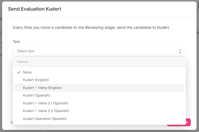 - Haz clic en el trigger para cargar las evaluaciones Kudert en la etapa de tu preferencia.